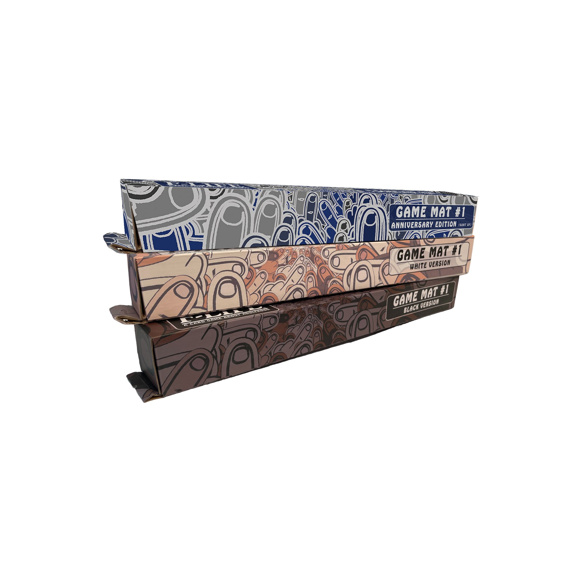 This game mat features deck and discard pile spots to keep your game organized while playing, but it also has places for current and future expansions!